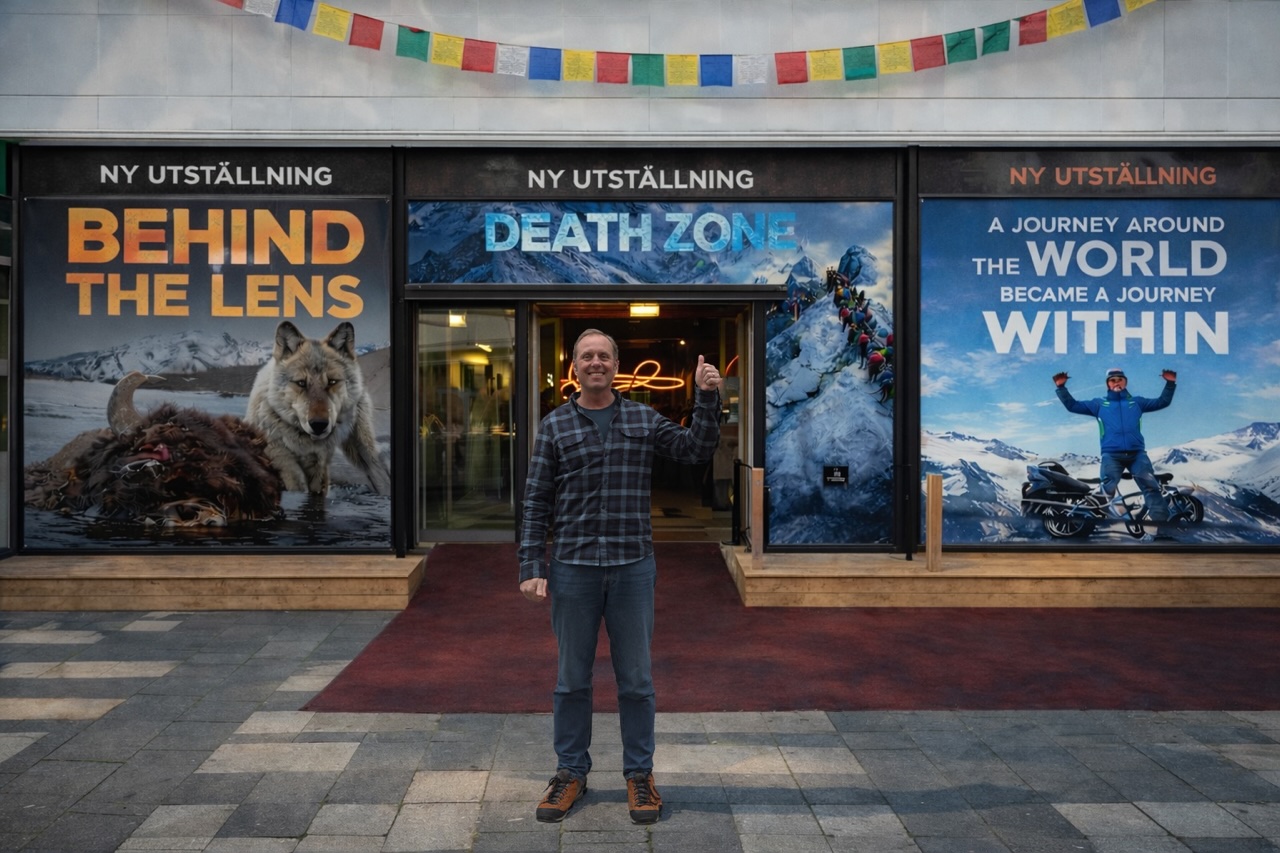 Vid öppningen erbjuds tre parallella utställningar på muséet: Fredrika Ek, som cyklade jorden runt på tre år, klättraren Fredrik Sträng och hans +8000 meter om världens högsta berg, samt amerikanska fotografen Ronan Donovan med en utställning om vargarna i Yellowstone.