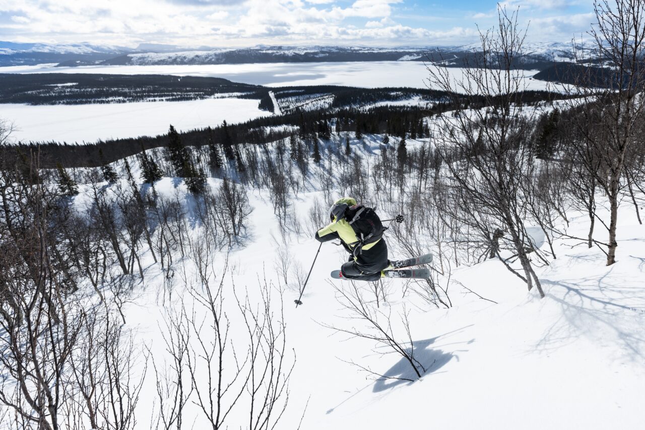 Från toppen kan du välja utförsåk på baksidan av Mesklumpen, så många varv du vill och orkar. Ta sikte ner mot Ankarvattnet och du får ett fint åk i varierad terräng, cirka 400–500 meter i fallhöjd.